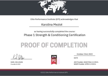 Od ponad 8 lat pracuję jako trenerka personalna, spędziłam setki godzin na sali treningowej i drugie tyle poświęciłam na rozwój wiedzy. Tylko takie połączenie pozwala na świadome prowadzenie podopiecznych. Wszystkie działania mają doprowadzić do skutecznej realizacji Twojego celu. Ze mną staniesz się silniejszy/a, sprawniejszy/a i zdrowszy/a! Zwracam dużą uwagę na ZDROWIE i KOMPLEKSOWO podchodzę do naszej współpracy. Każda współpraca jest dla mnie wyjątkowa, Twoje cele stawiam na pierwszym miejscu.